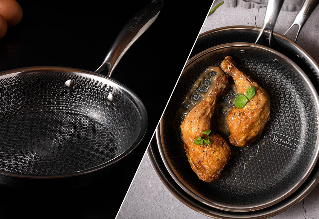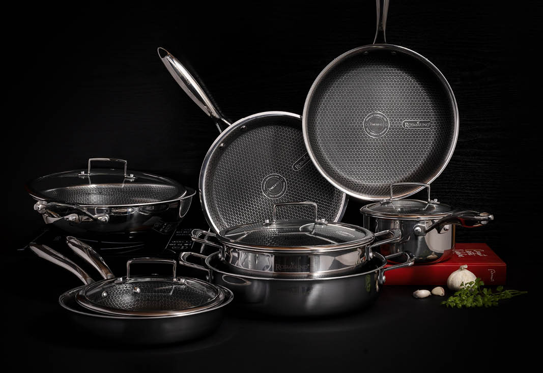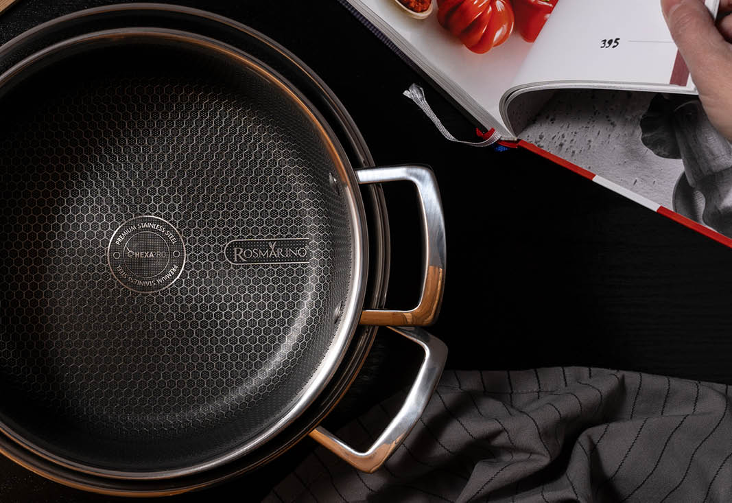 Rosmarino HexaPro ist die ideale Wahl für alle, die Ergebnisse auf Restaurantniveau bequem in ihrer eigenen Küche erzielen möchten. Dank seiner außergewöhnlichen Haltbarkeit, Kratzfestigkeit und der fortschrittlichen HexaPro-Technologie ermöglicht es Ihnen die Zubereitung von erstklassigen Gerichten. Verwirklichen Sie Ihre kulinarischen Träume und lassen Sie sich von diesem Premium-Kochgeschirr auf eine kompromisslose kulinarische Reise mitnehmen.