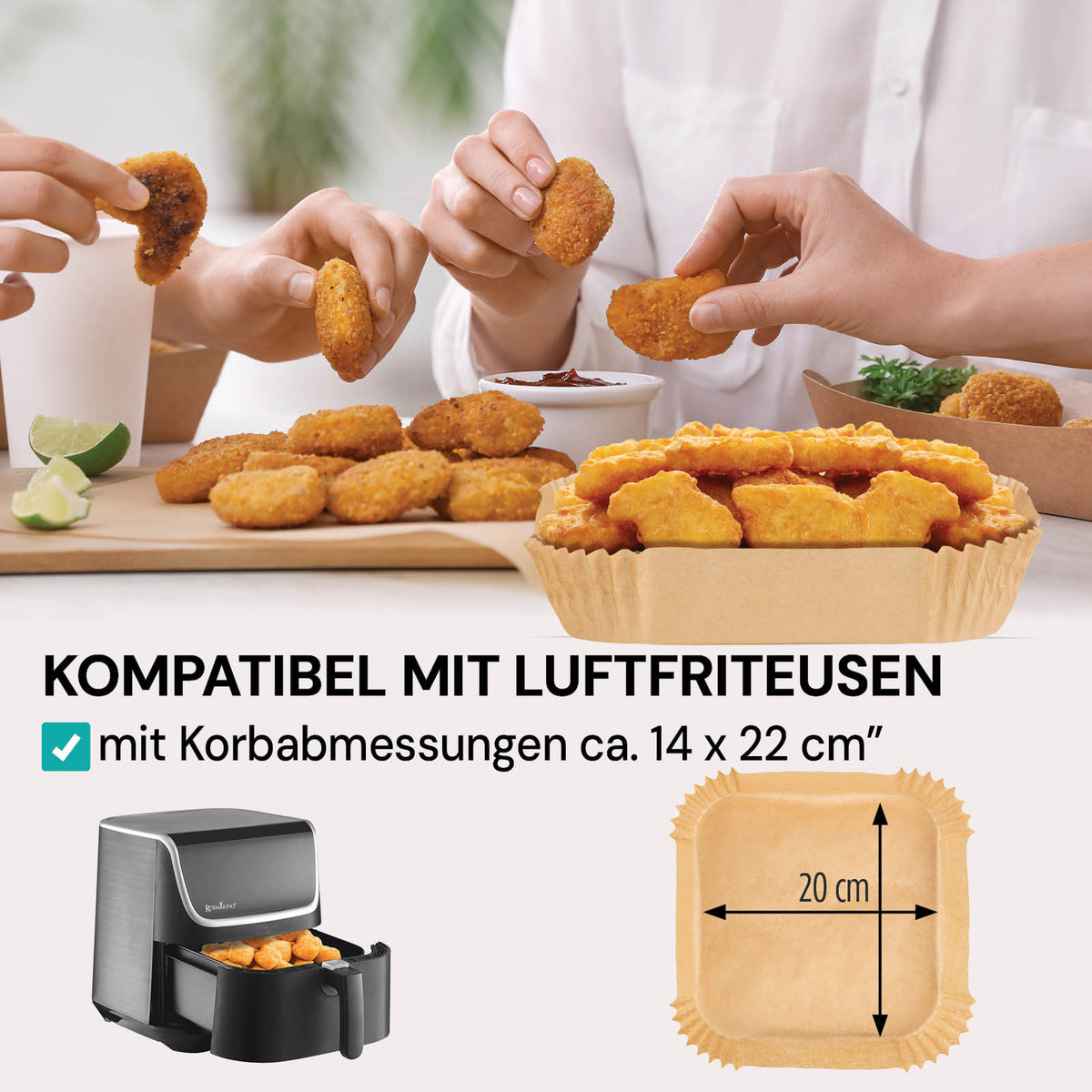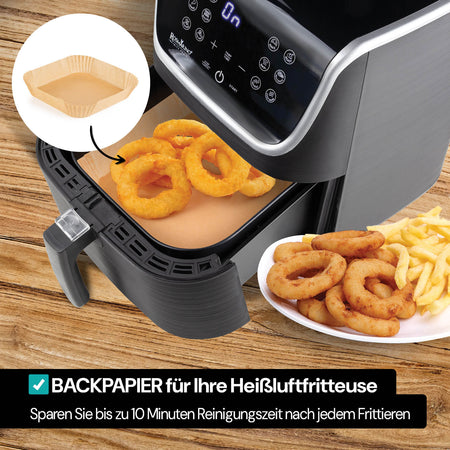 - 50 Stück Backpapier für deine Lieblings-Heißluftfritteuse.