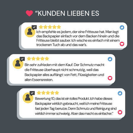 - Du erhältst 50 Stück Backpapier im Set, was 50 sorgenfreie Mahlzeiten bedeutet.