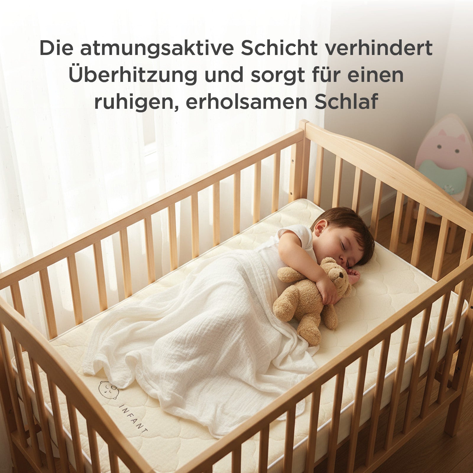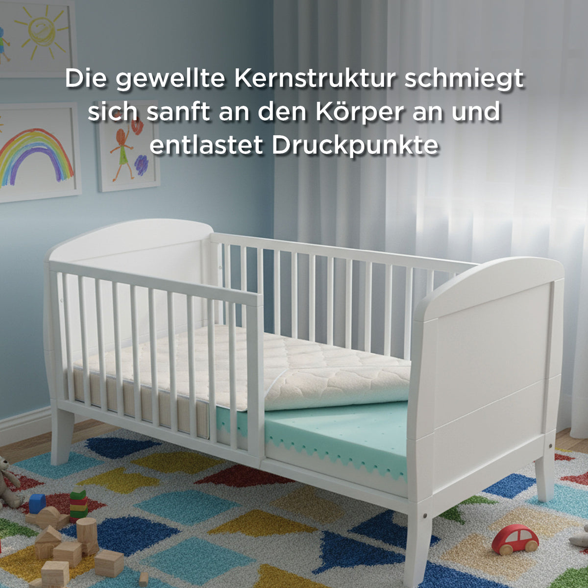 - Babymatratze, entwickelt für ruhige Nächte und fröhliche Morgen.