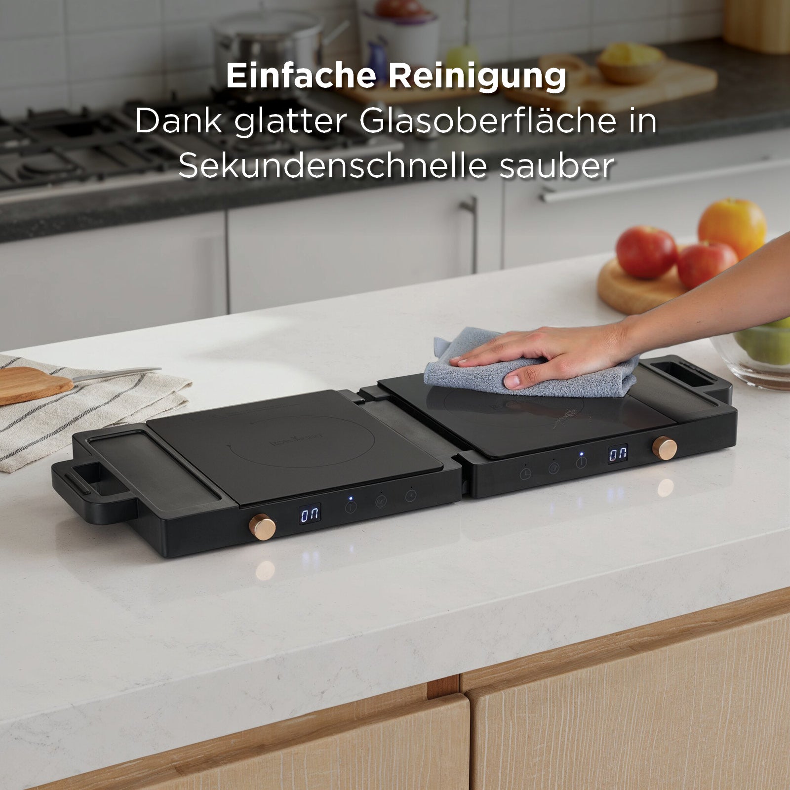 - Leicht zu pflegen durch glatte Glasoberfläche, die sich in Sekunden reinigen lässt.